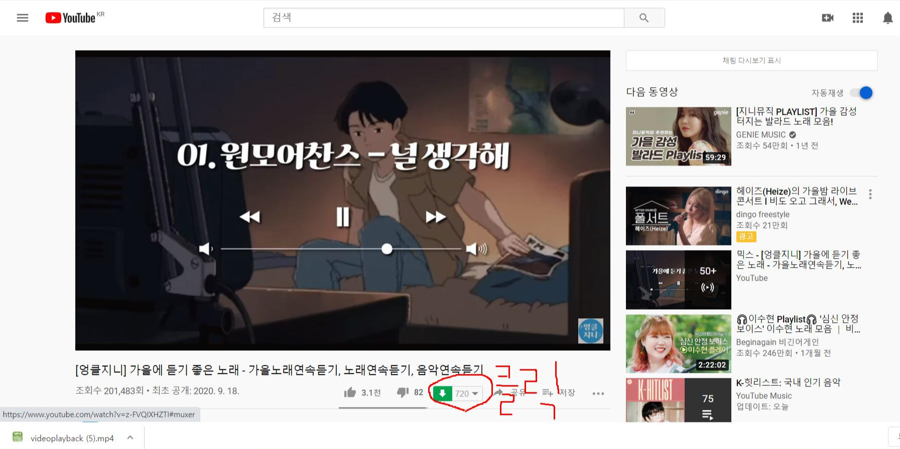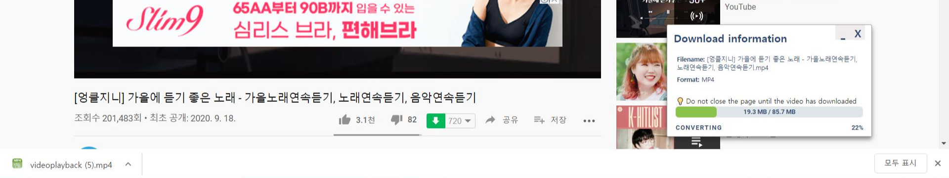 하단에 비디오플레이백과 다운로드 창이 생겼네요